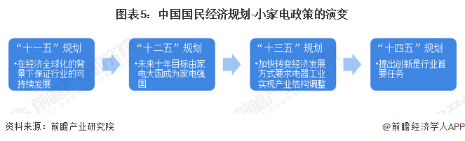 小家电是我国家电行业的重要分支,也是智慧家居产业的重要组成部分。根据我国国民经济“十一五”计划至“十四五”规划,国家对小家电行业的支持政策经历了从“保证行业可持续发展”到“由家电大国发展成为家电强国”再到“积极推进创新发展”的变化。