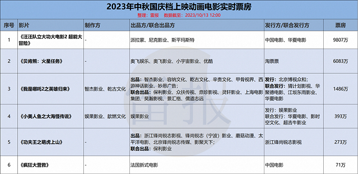 国庆档6部动画电影:新片超半数,总票房贡献不到一成