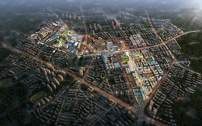 为有效激发商圈繁荣发展的无限潜能,整个街区按照“三心两轴,多节点多组团”的框架进行规划建设,分为核心区、商旅文融合发展区、拓展区共3个片区,包含17个项目,目前已完成15个。
