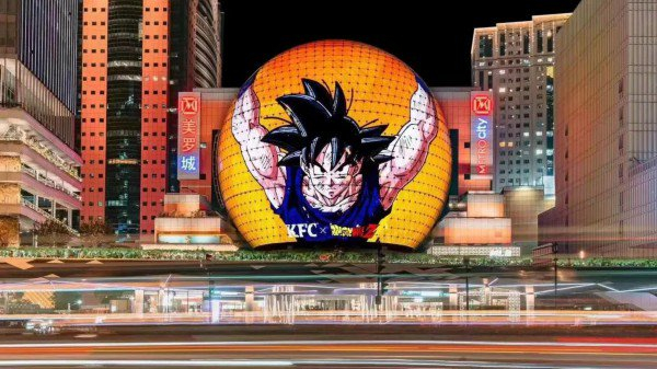 前几日,激情热血的动画《七龙珠Z》就出现在美罗球和徐家汇T20大厦的联屏上。最强战士悟空与经典主角群接连出现,令80、90后的“龙珠迷”专程前来打卡。记者了解到,这个活动是由百胜集团旗下肯德基推出的一款联名IP活动,而美罗城肯德基店则是徐汇唯一一家展出全球限量手办的线下门店。