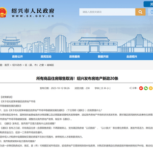 绍兴“房地产新政20条”全面放开限售:二手房挂牌量3小时激增近2000套