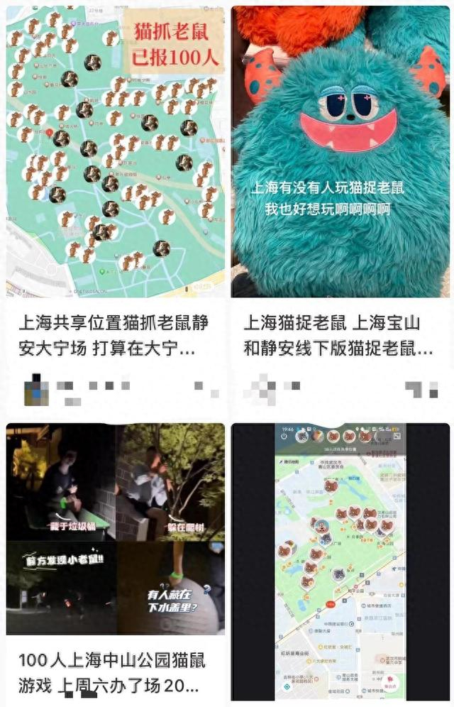 社交平台上,许多线下捉迷藏的玩家招募帖热度都很高,动辄大几百的点赞和收藏。以上海为例,在社交平台搜索关键词“上海 猫捉老鼠”后,便出现了大量招募帖,热门游戏地点有中山公园、世纪公园、徐汇滨江等,静安的闸北公园、大宁公园、大宁灵石公园等公共公园,也成为了被提及的游戏基地。