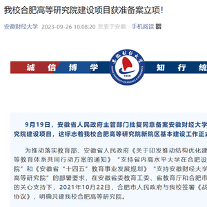 据公开报道,安徽财经大学合肥高等研究院建设项目近日批复,安徽财经大学的前身是安徽财贸学院,始建于1959年,两年后学校迁址蚌埠,如今时隔62年,重返省会办学。