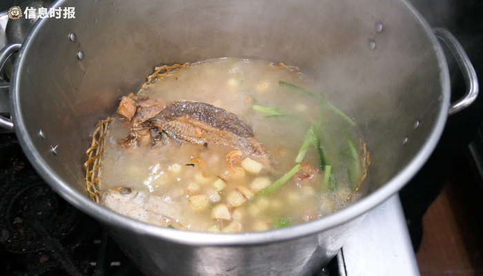 接下来的时间,便交给由鲮鱼、猪骨、老鸡、虾米、大地鱼熬煮而成的高汤。辉哥把柚皮固定于两片六边形的竹篾里,与各种经过油烹的煲汤食材一同放入汤锅。“用竹篾定型是老师傅的智慧,汤水能够透过竹篾的竹孔沁入食材,既能让柚皮吸收汤汁,也不会影响煲煮的时间和效果。”辉哥笑着说。经过文火慢煲4个小时,一锅色泽乳白、味道浓郁的高汤终于出炉。为了让高汤的浓郁滋味渗入柚皮的每一个“毛孔”,关火后还需焗2个小时。吸饱高汤精华的柚皮,上碟后淋上由蚝油、生抽、冰糖等勾成的芡汁,滋味更显浓郁。