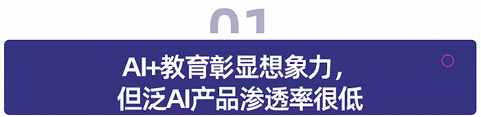 尽管越来越多的玩家正积极布局 AI+ 教育相关业务,但遗憾的是,因购置成本较高、AI 在教学上的价值并未被家长普遍认可,泛 AI 产品的渗透率其实并不理想。