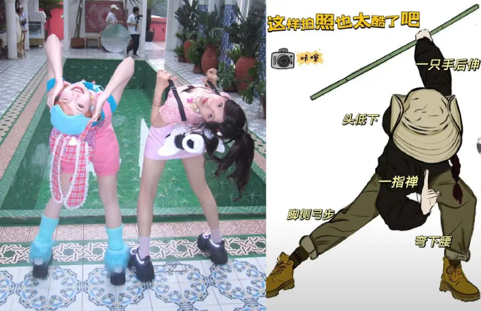 和白昼小熊下腰照以及徒步的侧弓步一指禅照合称当今拍照界的三大天王。虽然火的背景各不相同,但我也看出点门道,现在拍照已经不仅仅是考验颜值了,还卡体力和脑袋。但凡腰不好,或者头缝宽一点拍这3种照片都做不到百分百完美。