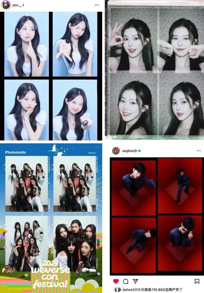 仔细研究了一下,发现本土博主们的人生四格几乎都是去韩国拍的,会带上一些“女团同款”、“idol新宠”之类的tag。画风也和小时候大头贴不一样,从满满花哨贴纸、怼脸拍进化成了简约款、半身照全身照甚至还有俯拍。