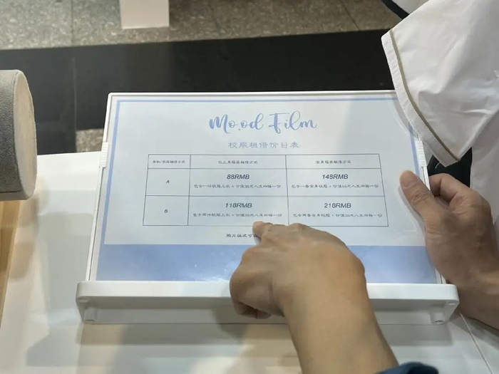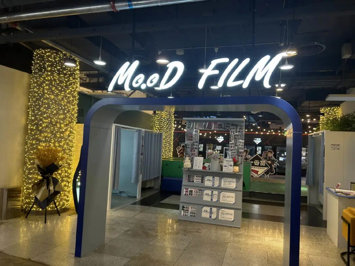 坐一个小时地铁到了这家名为“Mo.oD Flim”店门口,竟然空无一人。正当我们二人对视一眼以为被小红书欺骗踩雷了,旁边的大爷起身和我们打招呼,“小姑娘来拍照啊?这会儿工作日上午正好没人,你们来的真巧,平时人多的时候要排个一小时队呢。”