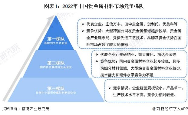 中国贵金属材料市场竞争梯队