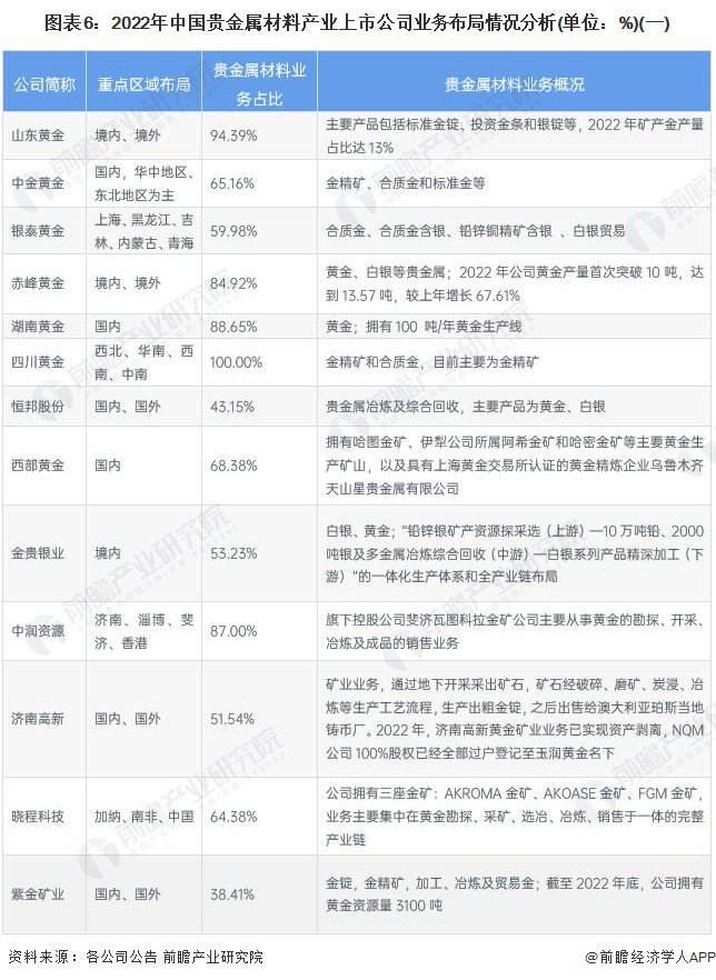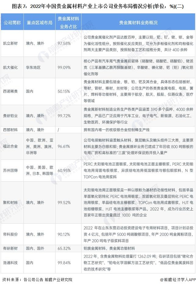 中国贵金属材料行业上市公司业务布局及竞争力分析