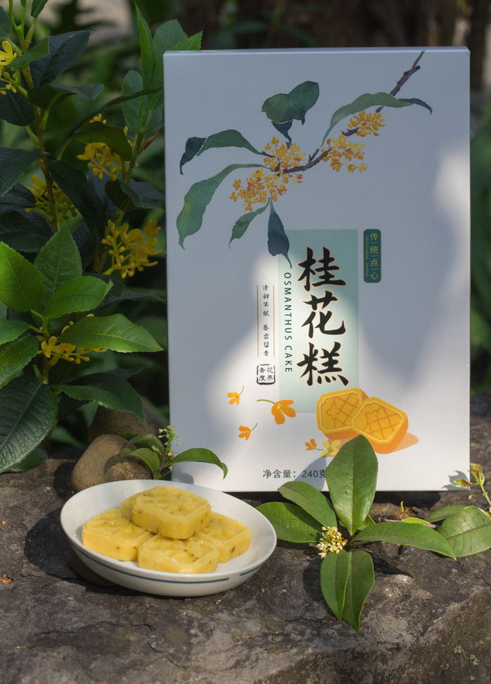 桂花糕、桂花松塔酥、桂花茶、桂花酒、桂花汤圆……将本地优质桂花为材料,加入日常食物之中,让桂香在唇齿间流转,久久收藏这份秋意。