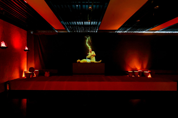 展览中的全息厅则以大规模的全息投影展现“不朽的秘密”,高超的虚拟成像技术让一切仿佛就真实存在眼前,而观众就身处这场古埃及人为去往来世做准备的盛大仪式之中,目睹木乃伊化的处理过程。