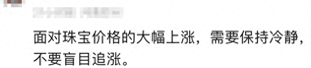 珠宝业内人士建议,珠宝市场价格会有波动,消费者还需理性购买,避免盲目跟涨。