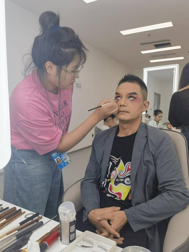 康勇在大运会上台前化妆