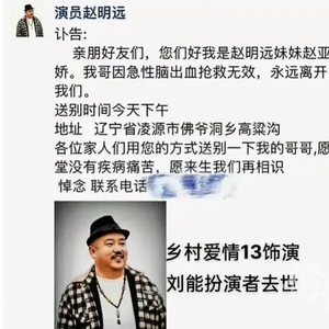 发文悼念演员赵明远