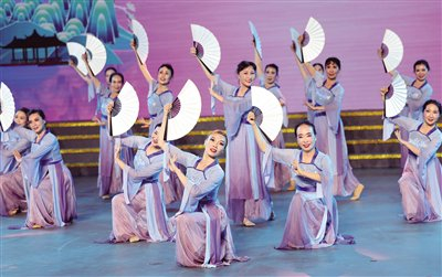 10月13日,西城区西长安街街道舞蹈队、丰台区太平桥街道融融爱舞蹈队表演《梅花赋》。
