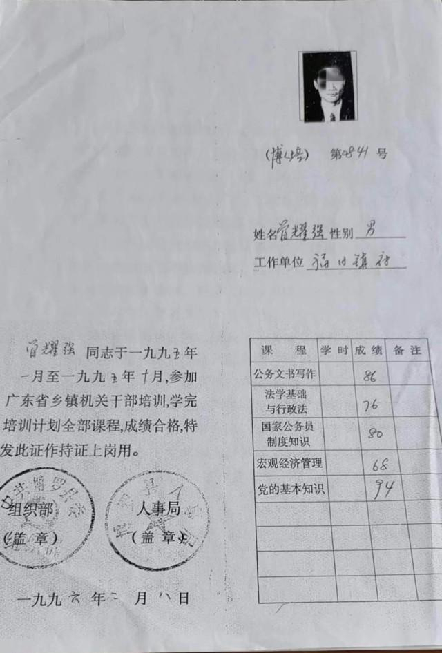 曾耀强曾参加广东省乡镇机关干部培训,且成绩合格。
