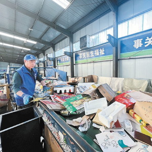 “在操作过程中我们统计发现,从居民家中回收到的可回收物,大约60%为低值可回收物。”徐小婷告诉记者,分拣中心建成了国内首条混合可回收物智能分拣设备,可进行50多类精细分选。除了能够回收硬纸板、塑料瓶、易拉罐等高值可回收物,还能分类处理玻璃瓶、旧衣服、旧鞋、利乐包装盒、泡沫塑料箱等诸多低值可回收物。