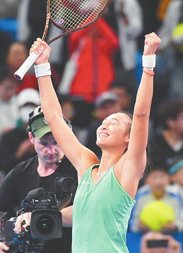 郑钦文夺冠后庆祝胜利