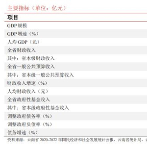 上述云南主要经济指标来自2023年云南省政府再融资一般债券(五期)信用评级报告