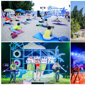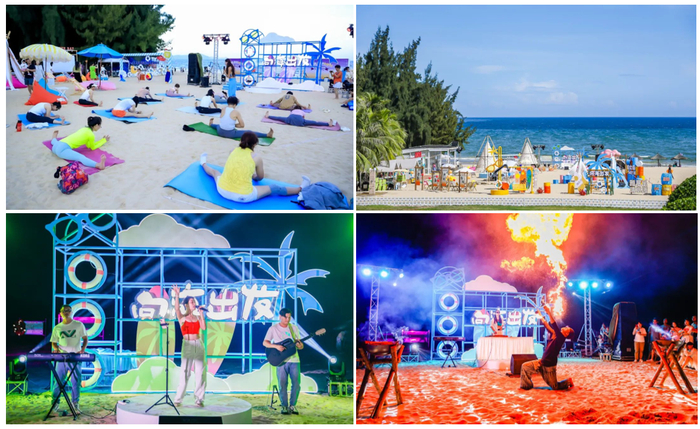 以“海南文旅网红第一盘” 海南雅居乐清水湾为例,节日期间为游客准备了海边美味市集、千米跳伞表演、冲浪赛、热浪民谣演出、汐潮电音派对、手碟艺术、沙滩运动场、飞盘表演赛等各项活动及表演。