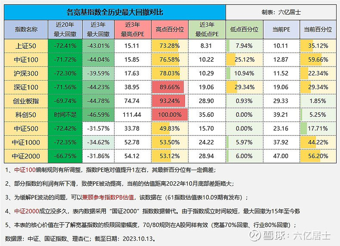 一、各核心宽基近20年回撤、估值与当前水平