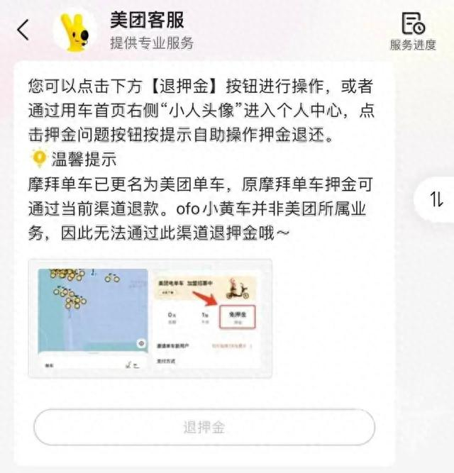摩拜单车押金要怎么退?又是从什么时候可以退的?今天下午,橙柿互动记者登录美团App咨询。单车客服表示,摩拜单车已更名为美团单车,原摩拜单车押金可通过当前渠道退款。“用户可随时进入美团App‘客服中心’申请退款。如有任何疑问,您可以通过美团App‘客服中心’在线客服进行咨询。”