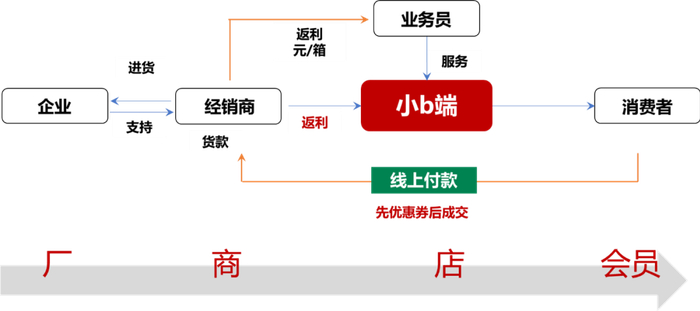 因此,新营销要从B端走向C端,借助数字化工具,赋能直面消费用户的终端店,通过线上手段让厂家费用变成会员权益的方式得以保障,同时用户数据的即时性获取让厂家大幅度提升用户洞察能力,如下图所示: