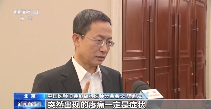 中国医师协会疼痛科医师分会会长 樊碧发:突然出现的疼痛一定是症状,它预示着人体有毛病了,或者受创伤了,避开危险赶紧去医院看病等等,这是急性疼痛的症状。而慢性的长期迁延性疼痛,就是折磨人的一种疾病所在,有的慢性疼痛是原发的,查来查去不知道。而有的慢性疼痛是继发的,继发于各种疼痛里,慢性疼痛既可以是个共病,也可以是一个个病。