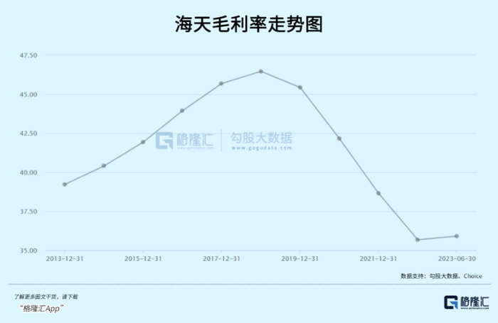 此外,海天盈利能力也持续下滑。2023Q2,毛利率为34.73%,同比下滑0.14%,环比下滑2.2%。这较2019Q4大幅下滑13.5%,力度非常大。这除了原材料涨价外,还跟产品升级遭遇阻力以及市场竞争加剧有关。