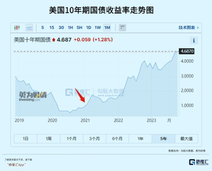 2021年初,确立了美债利率出现大拐点。后来,通胀不断攀升,美联储被迫大幅加息至今,美债也持续攀升。我们都知道,10年期美债收益率是全球风险资产估值的锚,它的持续走高,自然对成长股是极为不利的。