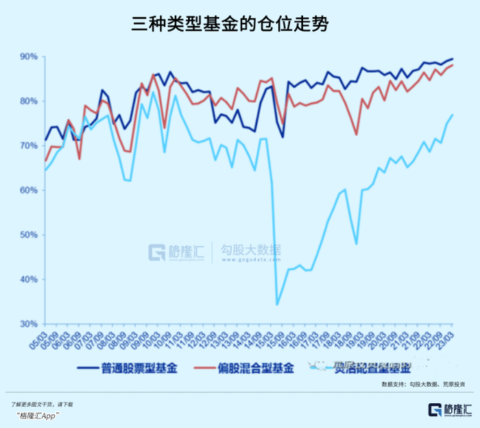 过去几轮大的熊市底部,都曾发生过机构仓位大幅下降的情况,背后是基民扛不住亏损出现了大量赎回。不过,本轮调整至今,仍然没有看到此类现象,各种风格的权益类仓位均维持在高位。