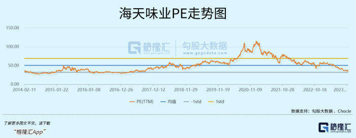海天从历史高位的124元一路下杀至当前的35.85元,累计跌幅已经高达70%。市值蒸发超过5000亿元,最新市值不足2000亿元。海天的估值水平也从120倍回撤至当前的33.78倍。
