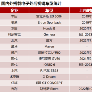 近几年,电子外后视镜也成为了国内车企关注的焦点,然而由于国内此前实行国标(GB15084-2013)限制,国内尚未有搭载电子外后视镜的量产乘用车出现。但在今年7月1日后,电子后视镜终于得以合法上路。