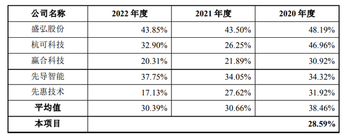 此外,2020年-2022年度,星云股份同行业可比公司的综合毛利率均值分别为38.46%、30.66%、30.39%。此次募投项目的毛利率与之相比,明显较低。
