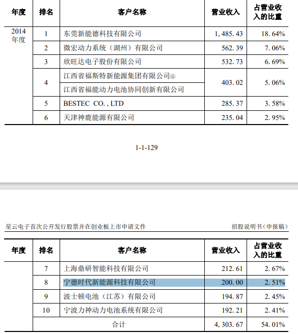 而在星云股份2017年递交的招股书中可以发现,早于2014年宁德时代就成为了其重要客户。