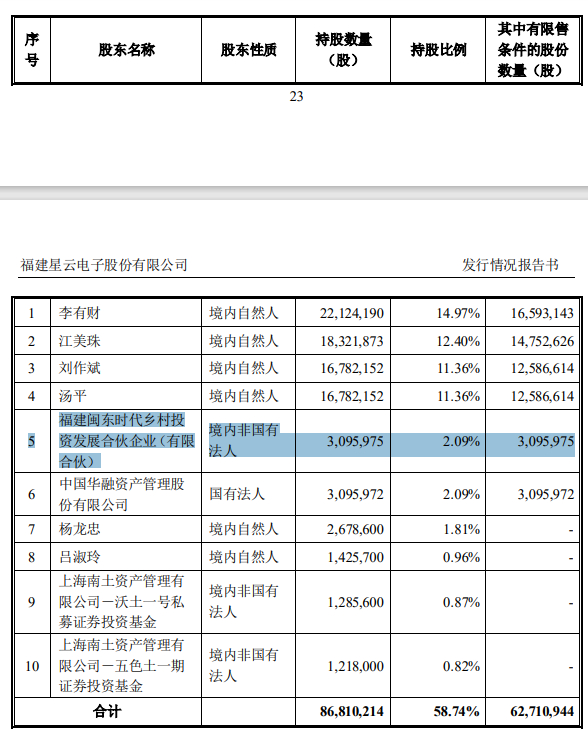 星云股份的实控人为李有财、刘作斌,截至2023年3月31日,李有财、刘作斌于星云股份的持股比例分别为14.97%、11.36%。
