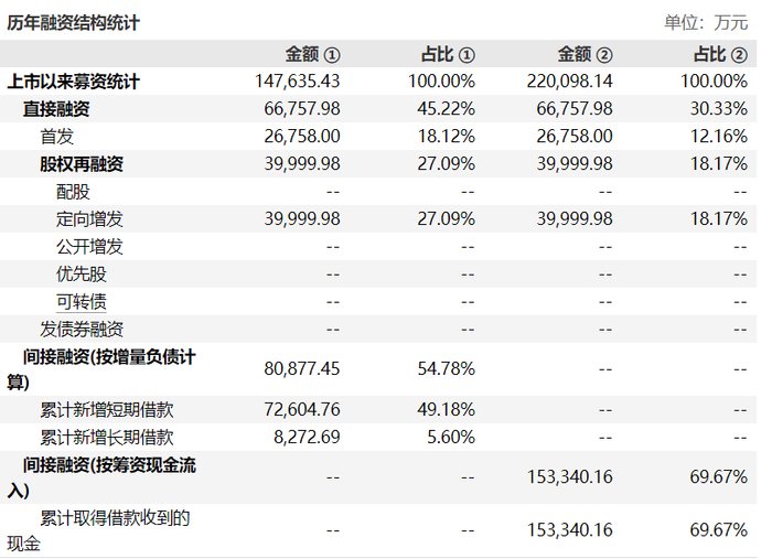2017年至今,星云股份共计募资约14.76亿元。其中,通过首发募资2.68亿元,通过定向增发募资3.99亿元,间接融资共计8.09亿元。