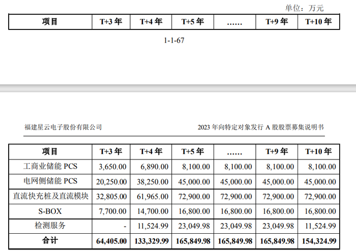 根据星云股份最新披露的定增说明书,该项目计划建设期为36个月,计划项目于第3年开始投产。自投产当年起算,第3年(T 3)、第4年(T 4)预计营收为6.44亿元、13.33亿元。第5-9年预计营收均为16.58亿元。