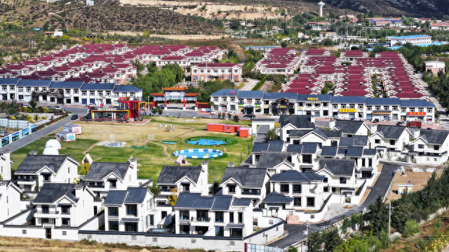 除了别墅区,民宿社区里亭台水榭、木雕石柱,翠竹环绕,令人心旷神怡,茶室、餐厅、娱乐间、恒温泳池,应有尽有,最为赏心悦目的还是登上二楼露台,三面环抱的连绵青山触目可及,清风徐徐,好不惬意。小镇距离县城只有几公里远,却温暖很多,黄羊山像一道天然屏障,为涿鹿平川挡住了外来的风沙。