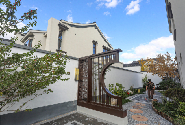 “青砖小瓦马头墙,回廊挂落花格窗”。山有山景,水有水色。小镇上,一幢幢青瓦白墙的徽派别墅,雅致而统一,成串的山楂红彤彤的,枫树一半金黄一半葱绿,为小镇平添了颜色。