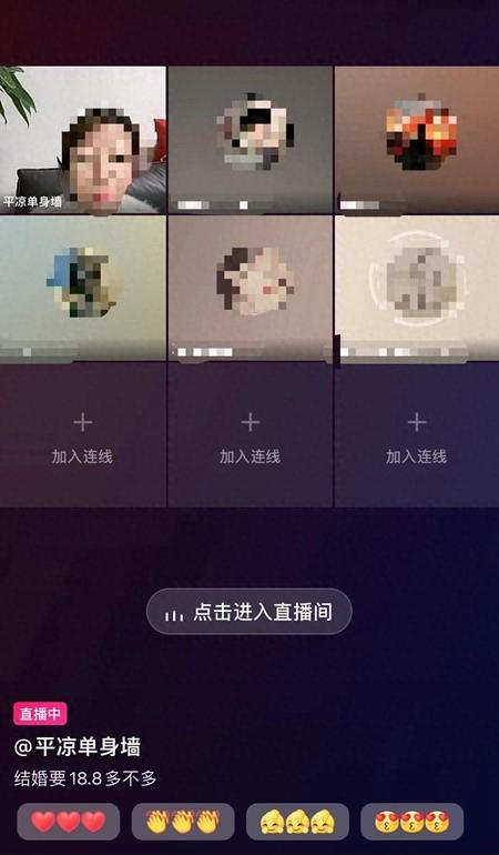 一名自称是甘肃省平凉市某婚恋服务企业的短视频号博主,夜晚在直播间发起群聊交友相亲,并将直播间题目设置为与彩礼有关的“结婚要18.8多不多”。图片来自网络
