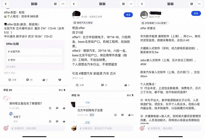 在脉脉上,甚至有不少人力资源从业的网友,都在咨询从传统行业向新能源汽车、芯片领域猎头转行的可能性。