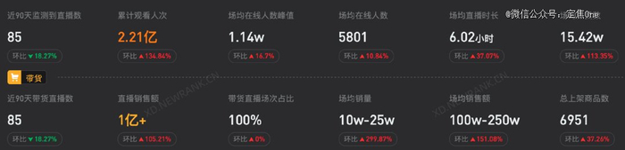 “其实好多老板娘也都在做这个模式,几千的平均在线人数是比较长期稳定的数据,每个账号的GMV基本都能稳定在二三十万一场。”小竹称。根据新抖数据显示,郑香香近90天直播场均销量10万-25万,场均在线人数5801。
