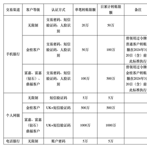 10月17日,中国邮政储蓄银行在官网发布个人电子银行渠道转账限额标准: