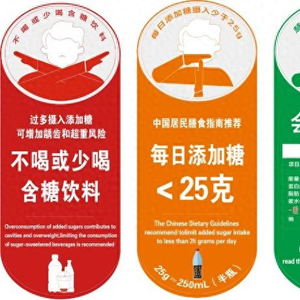 试点投放的“红黄绿”三色标识,主要是为了在消费者购买饮料的时候起到健康提示的作用。其中,红色标识建议“少喝或不喝含糖饮料”,告知消费者过量添加糖会增加龋齿和超重的风险;黄色标识表示“每日添加糖少于25克”;绿色标识的意思是推荐该饮料,并提醒居民“看懂营养成分表”。