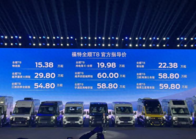作为换代产品,超广的售价跨度是新车的最突出亮点。江铃福特T8的售价区间为15.38-60.00万元。同时,江铃福特还携手改装商家推出了“共创”车型,每一款房车都有自己的特色,来满足不同场景的使用需要,不同的配置共计近百款。