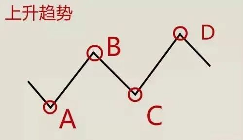 当后一个波的波峰和波谷分别高于前一个波的波峰和波谷,则为上升趋势。