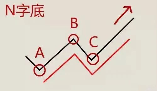 上图是一个很明显的N字底形态,在趋势图的底部形成了一个“N”形(红色线所示)。N字底的相关要素如下:
