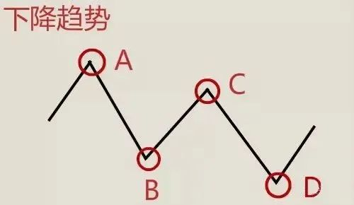 汇价由A点下跌至B点,虽然之后小幅上涨至C点,但C点低于A点,且从C点之后,下降到一个更低的D点。